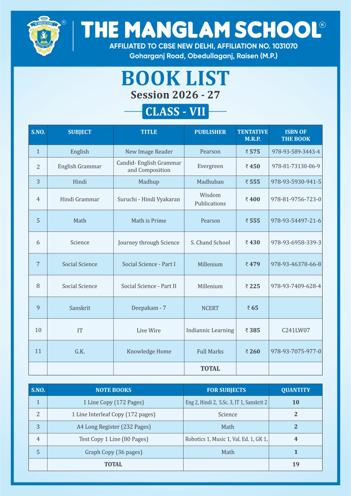 CBSE Affiliation No.: 1031070 | Call us : +91-9425392551 | Email ID : [info@themanglamschool.org] | NH-12 Goharganj Road, Obedullaganj, Raisen (M.P.) |